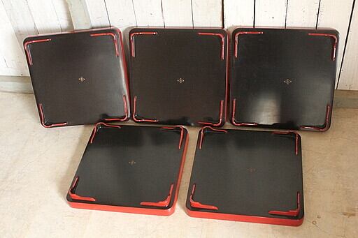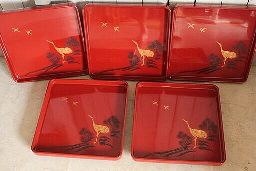 朱塗り お膳 10枚セット 鶴 沈金 木製漆器
