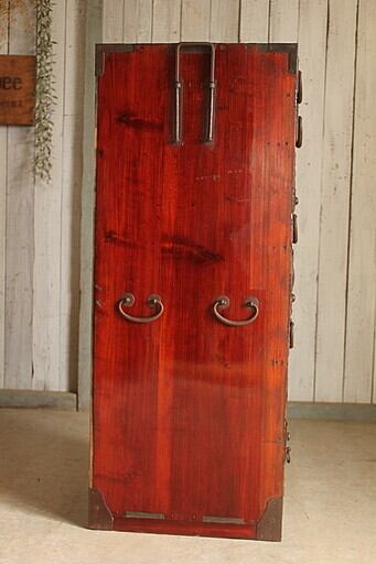 綺麗な縦型庄内箪笥 打ち出し金具