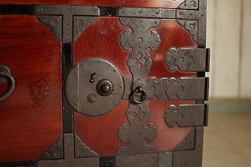 綺麗な丸金具前欅庄内箪笥 扉付き