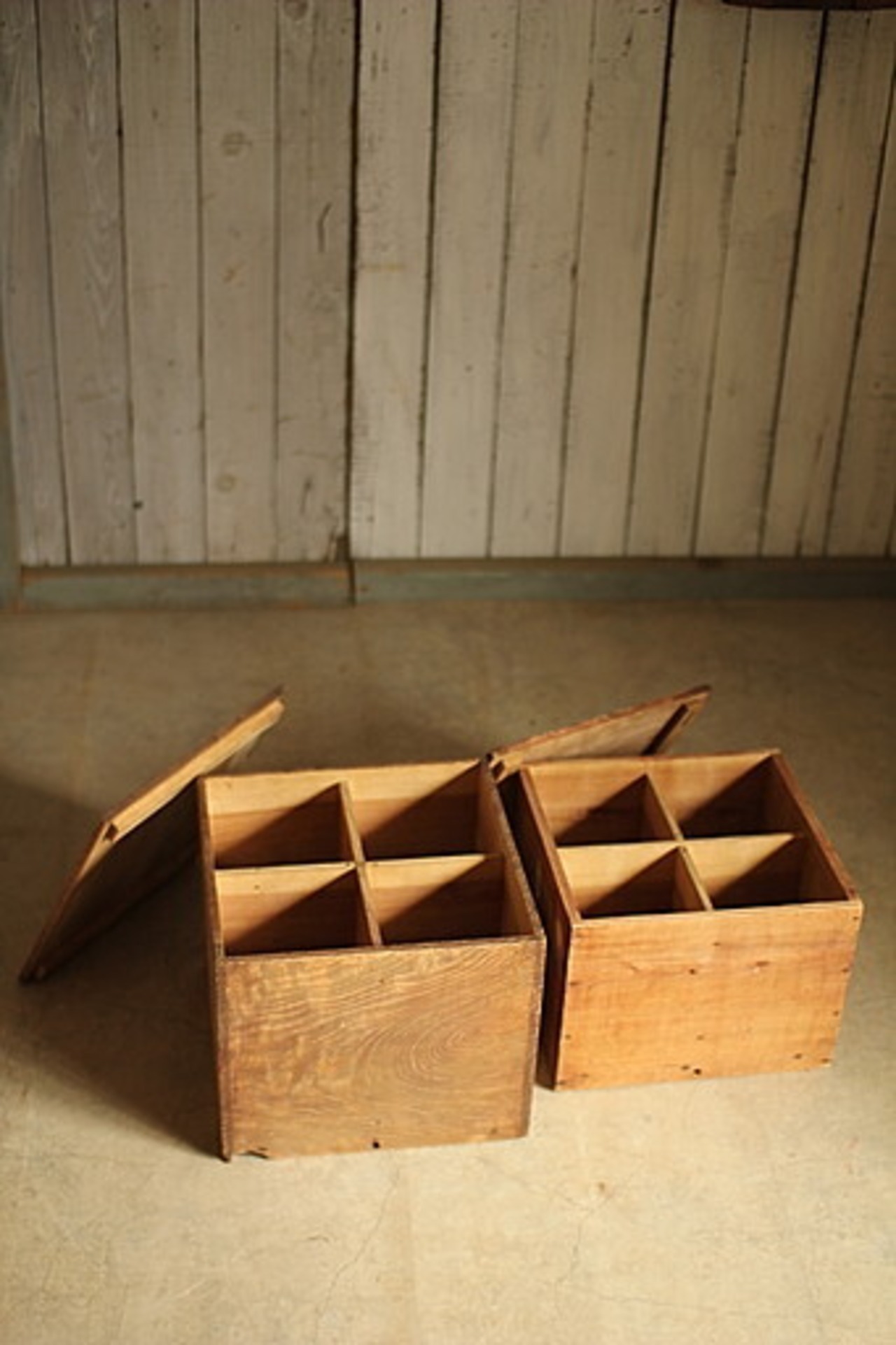 古い4マス木製収納箱2個セットです。