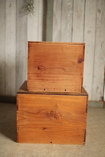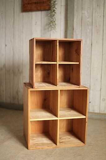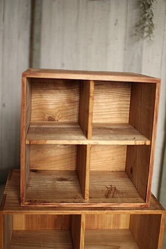 古く味のある4マスの収納箱 2個セット