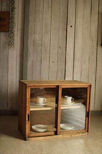 古い木製のガラス戸棚です。