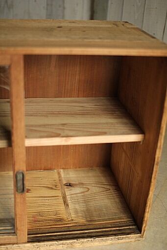 古く味のある小ぶりな木枠ガラス戸棚